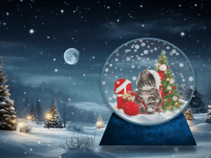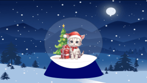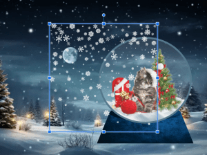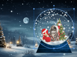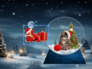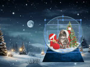 5. Using images online, I removed each image’s background. I used various Christmas theme images such as the cat with a Christmas hat, Christmas tree, and presents. In order to fit the cartoon concept of the background and the snowglobe, I made sure that the images I used were cartoon style which I find cute.